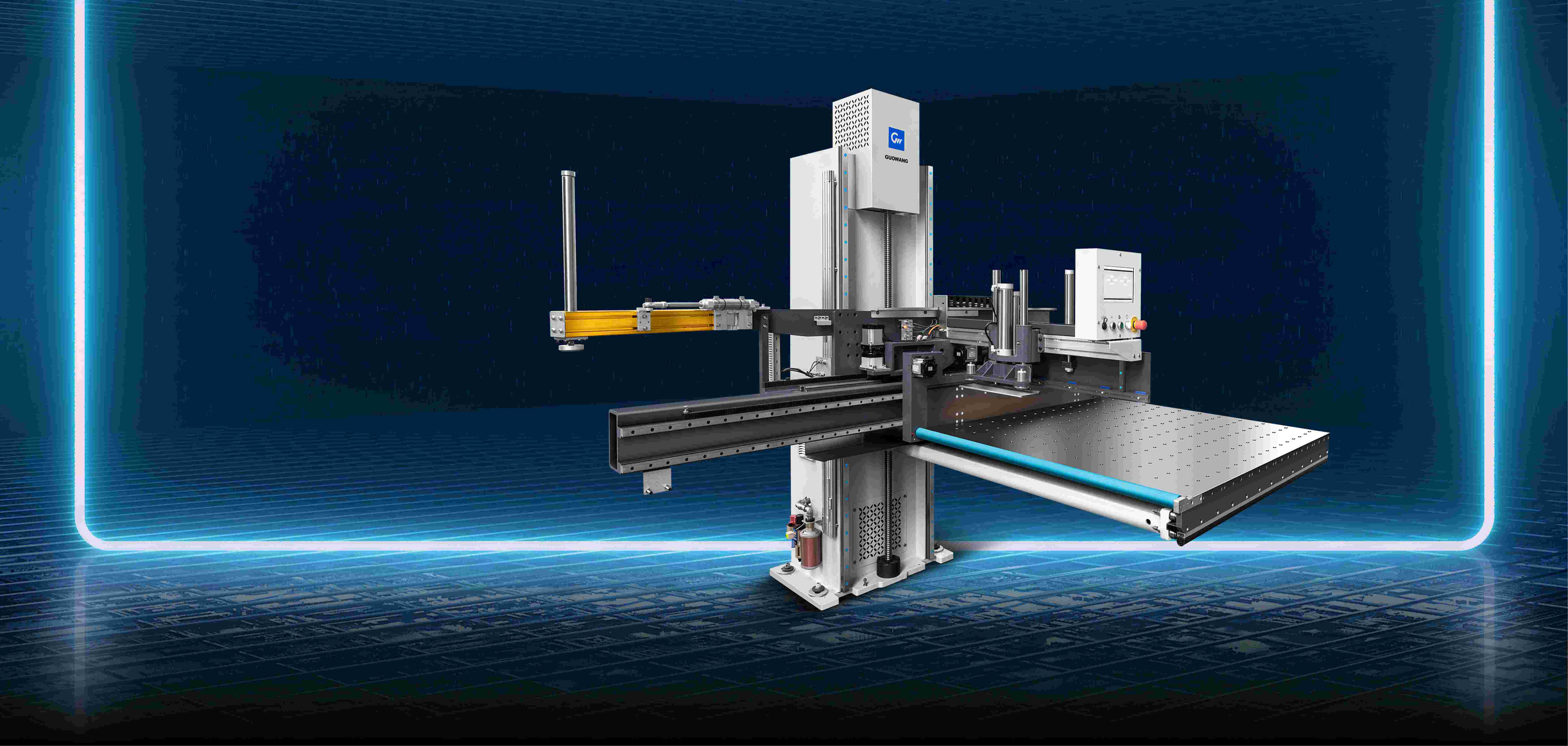 该机具备自动纸堆取纸,上机功能,可以迅速自动的将纸堆中的纸张转移到工作平台上。